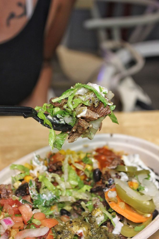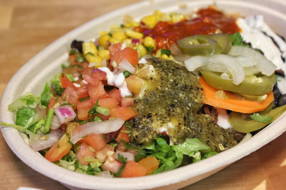 Our bowl burrito includes Rice, Beans, Pico de Gallo, Sour Cream, Cheese, Corn, Cilantro, Onions, and Chipotle Mayo.